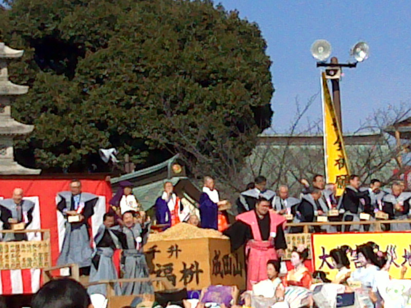![]() YouTubeで見れますが、 今年も大阪らしく観衆のマナーが悪くて豆まきは一時中断となる。 (動画と同じ光景が見れました) |