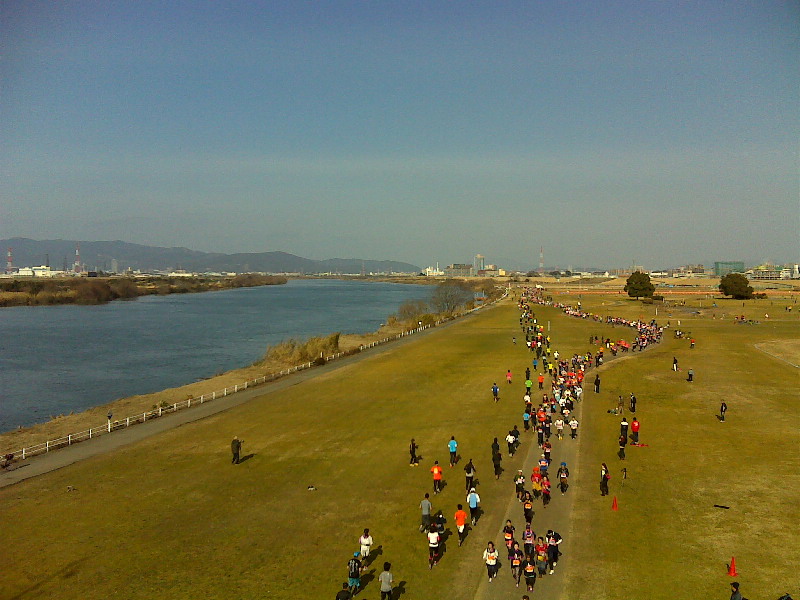![]() 淀川河川敷でのマラソン大会。 後で調べてみると 間寛平(63)がホスト役を務める初めての 市民マラソン大会 「淀川 寛平マラソン2013」 |