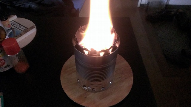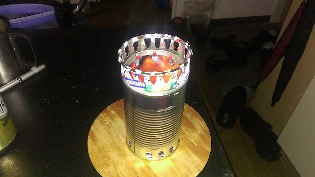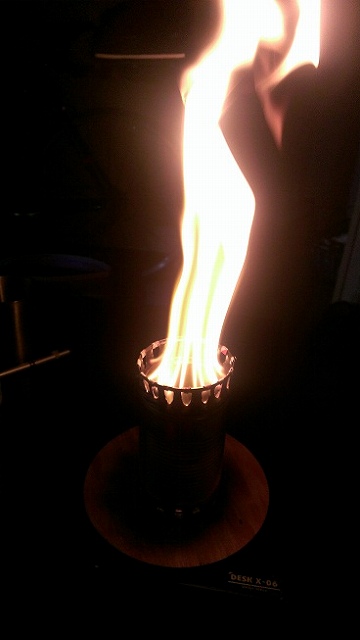 ![]() 煙突君2号改→別の缶セット(パイン缶・白桃缶)で作成 2ピース構成としたのと途中の2次燃焼孔をキッチリ作る |