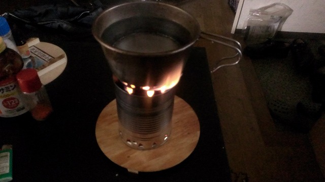 「Wood Gas Stove」という名前どおりに、二重構造になった内部の木片を燃やして、熱分解した木質ガスと空気の混合気体を外/内缶の間に発生する上昇気流に運ばせ、火口で二次燃焼させるという複雑な燃焼構造を持っている(構造は単純ですが §^。^§)。