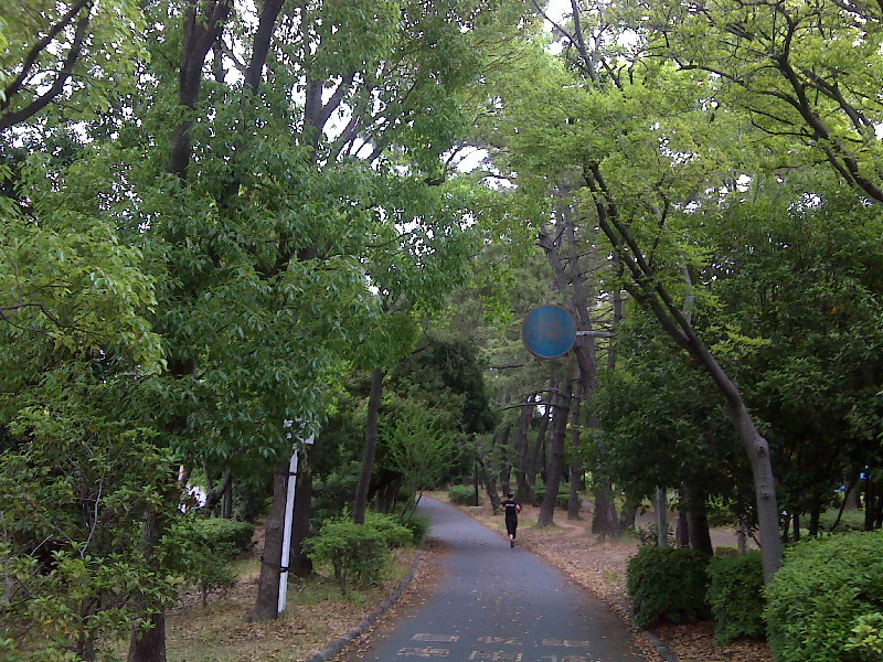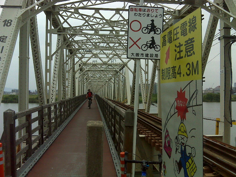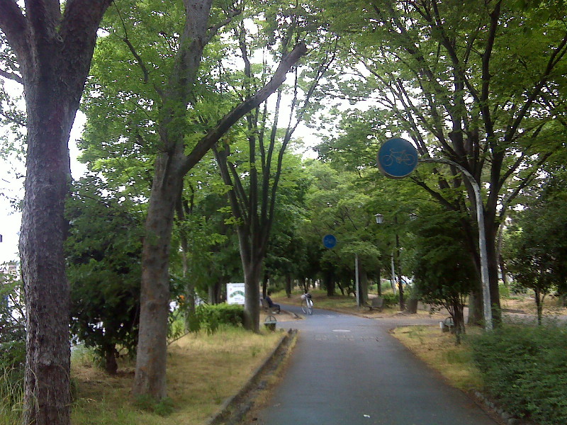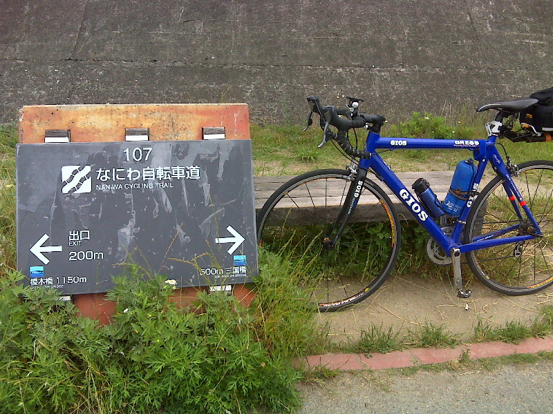 通常とは逆に時計回りの大野川歩行者自転車専用道が先行のなにわ自転車道。