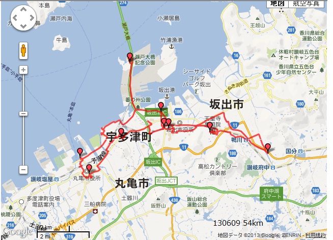 坂出周辺自転車ツアー 天気曇りのちにわか雨、レンタルサイクルにて讃岐うどんと瀬戸大橋の旅