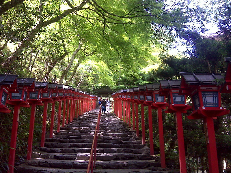 ![]() 貴船神社、参道の灯篭を進むと貴船神社本宮に出る。 |