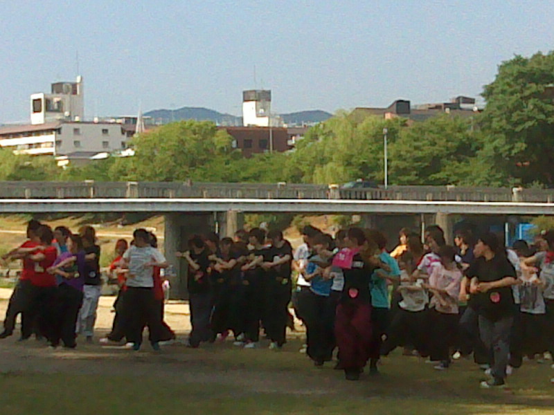 ![]() 鴨川では高校生が創作盆踊りの練習? |