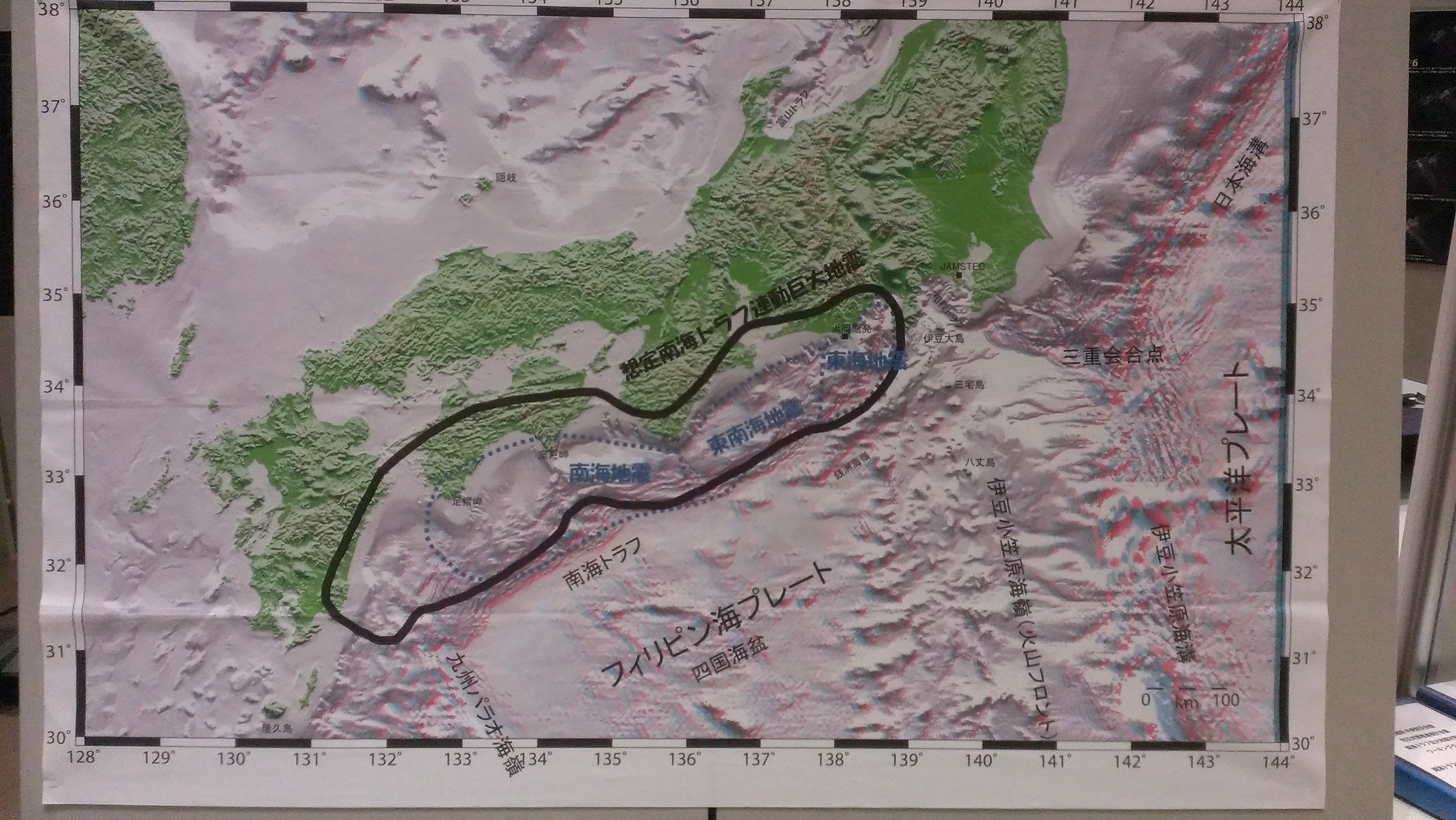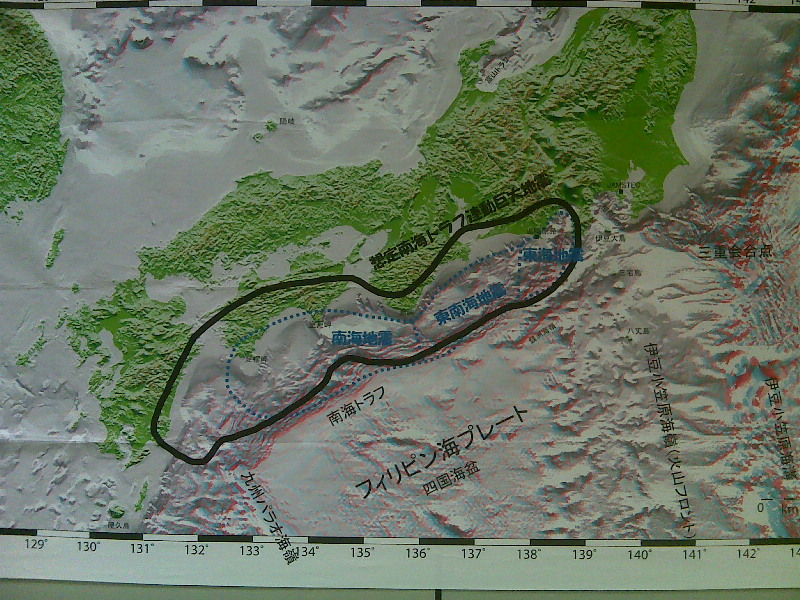![]() 人と防災未来センター で個人的に一番気に入った展示、赤青区分視の海溝立体画像。 日本海溝が深いぞ! |