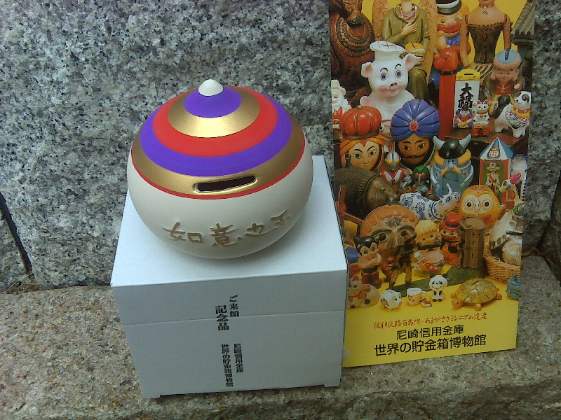 ![]() 隣にある尼崎信用金庫世界の貯金箱博物館、無料で貯金箱をいただきました。 |