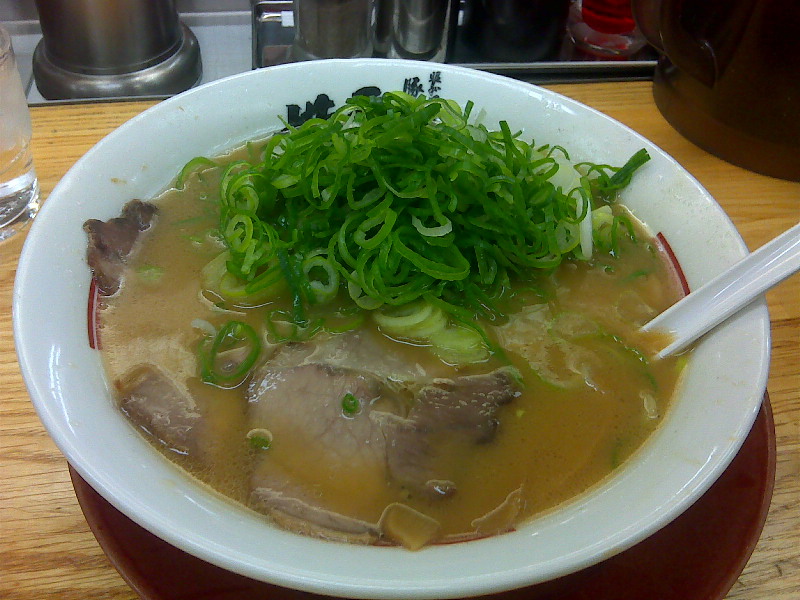 夕食、ラーメン横綱 とんこつ醤油 ネギ無料で入れ放題。