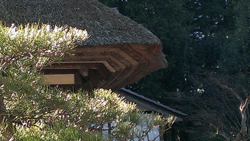 ![]() 恋瀬川CRの途中で常陸風土記の丘により、旧坂家住宅を垣根越しに確認。 このあたりの茅葺きは独特で“筑波流”というそうだ。 軒下に現れる部分が、古い茅やワラを重ねてバームクーヘンのような美しい縞模様になっている。 |
