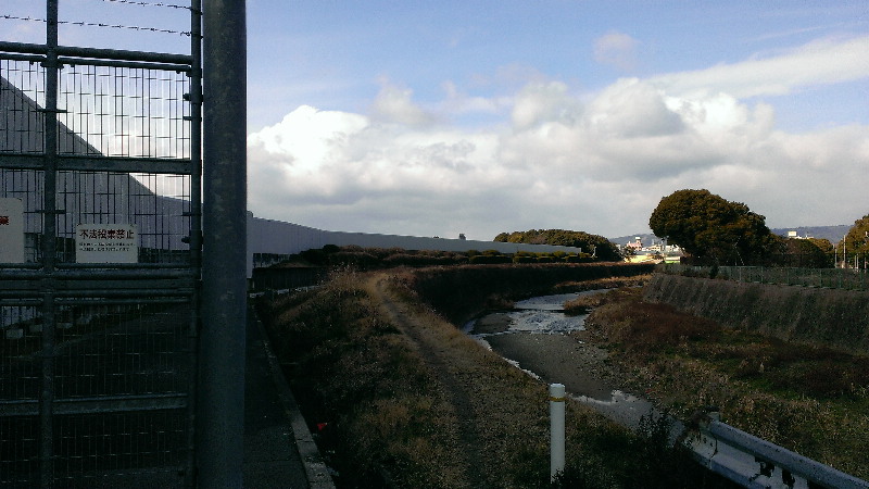 ![]() 空港近くの千里川は土手沿いシングルトラックに。 |