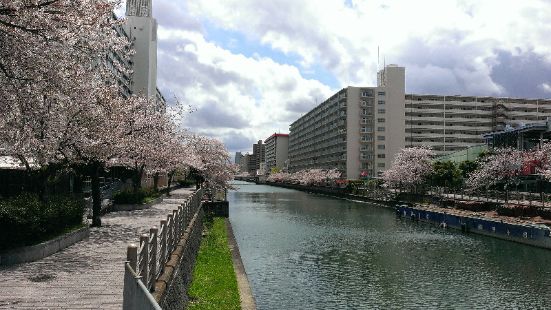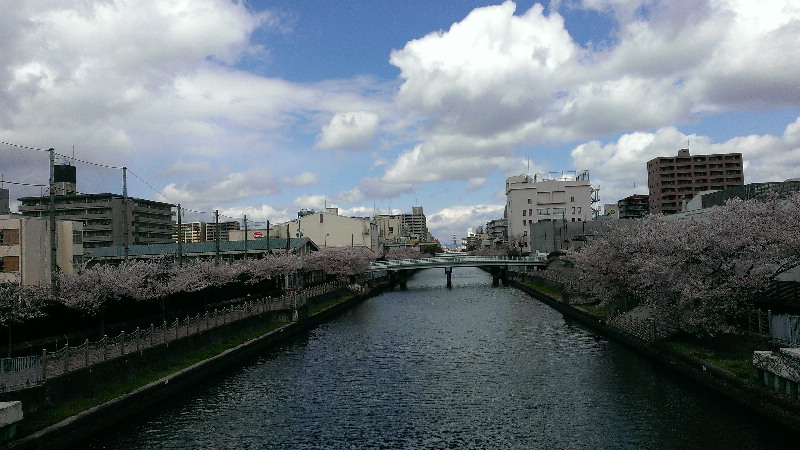 城北川、閑散としていますが、桜の季節は並木が綺麗です。