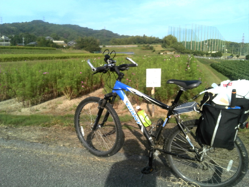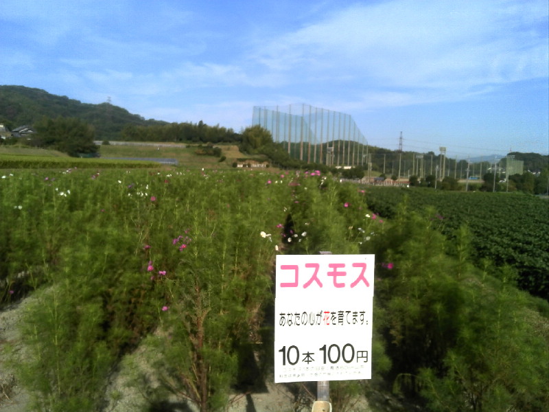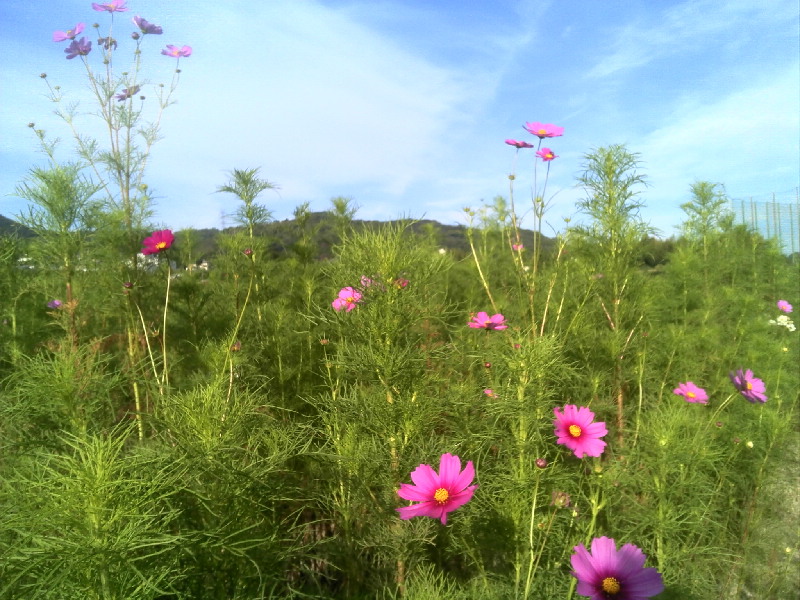 淀川で釣りなどしながらスーパ銭湯とネットカフェ泊の後コスモスの里へ。 コスモスは咲き始め状態。