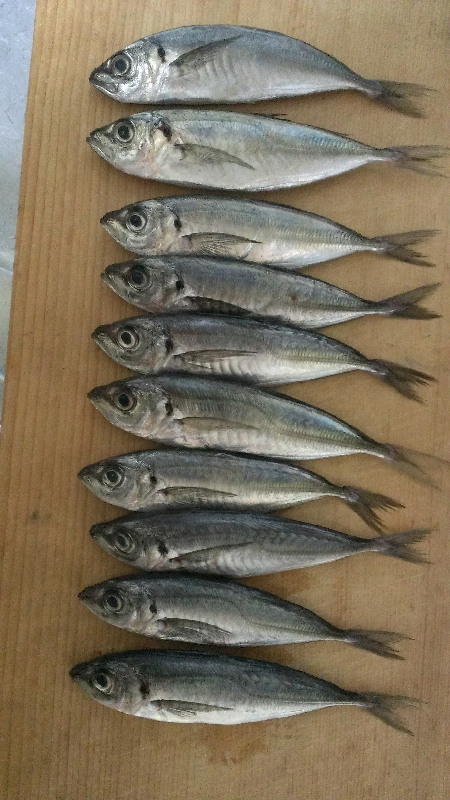 アジ狙いだったが、サッパ四匹 サバ一匹。