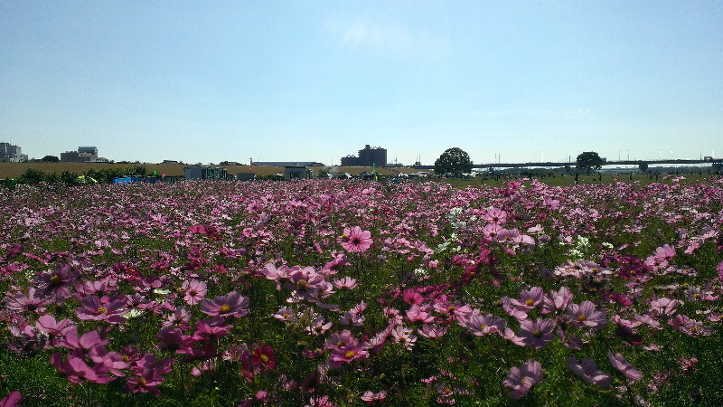淀川沿いを大阪方面に走る、淀川河川公園のコスモス。