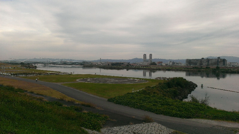 淀川河川敷から神崎川への目印になる防災用ヘリポート