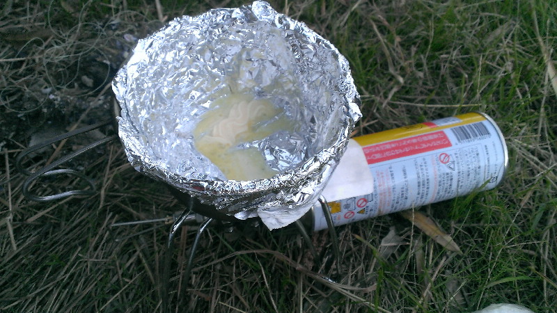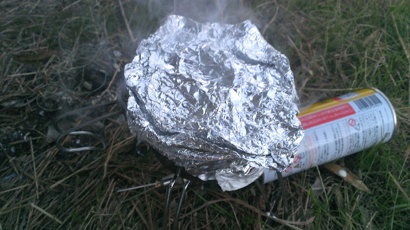 アルミホイルをロッキーカップに敷き。