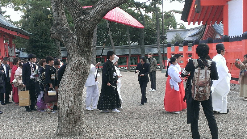 住吉大社では。結婚式を執り行っていました。