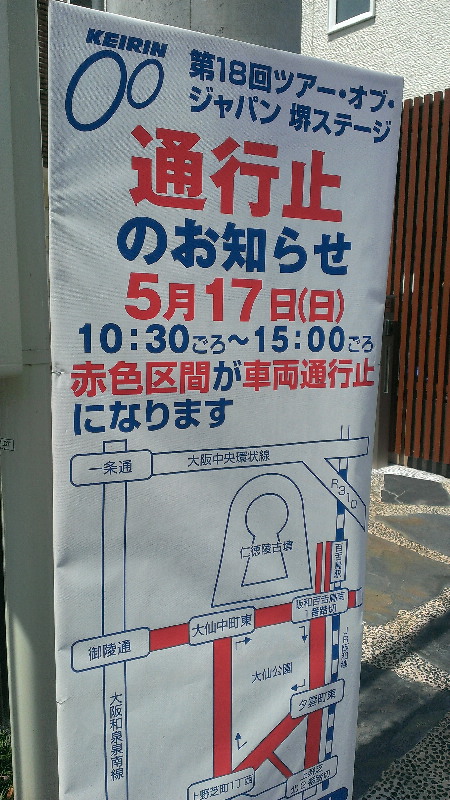 ![]() 日曜日、仁徳天皇陵へ行こうとすると レースの為、周辺通行止め 第18 回ツアー・オブ・ジャパン堺ステージ |