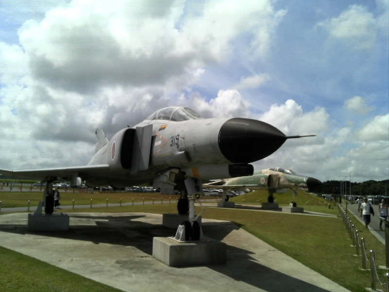 到着しました茨城空港、空港脇にはファントム戦闘機2機の展示が。