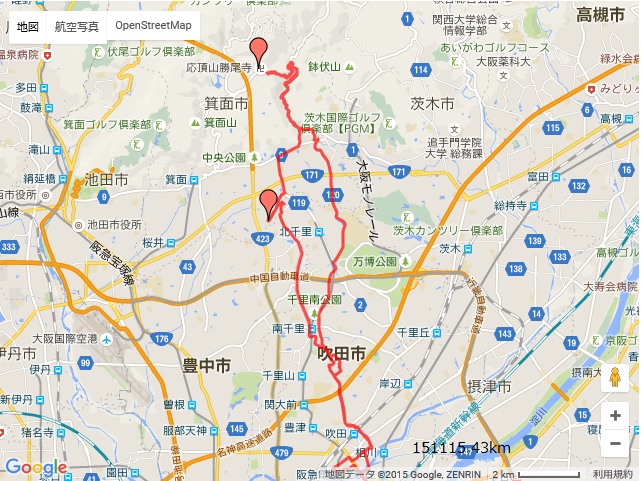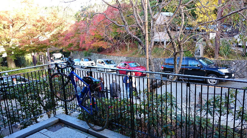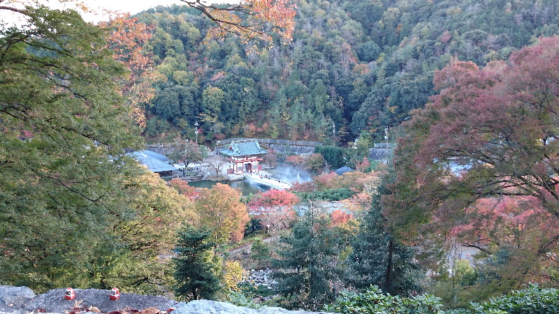 紅葉 天気が悪い週末、日曜の午後の天気回復を待って勝尾寺の紅葉見物。 勝尾寺で夜のライトアップまで待って、道路の通行止め解除後、箕面に下りるつもりだったが。 日暮れを待つのがいやになり、そのまま登りと同じ道を下り、スーパー銭湯へ。