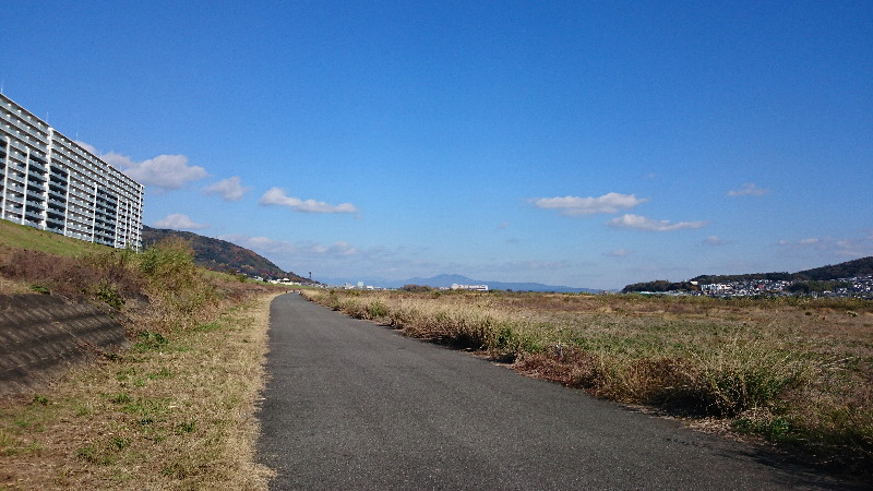 日曜の朝、第二京阪沿→天野川沿いにて戻ります。