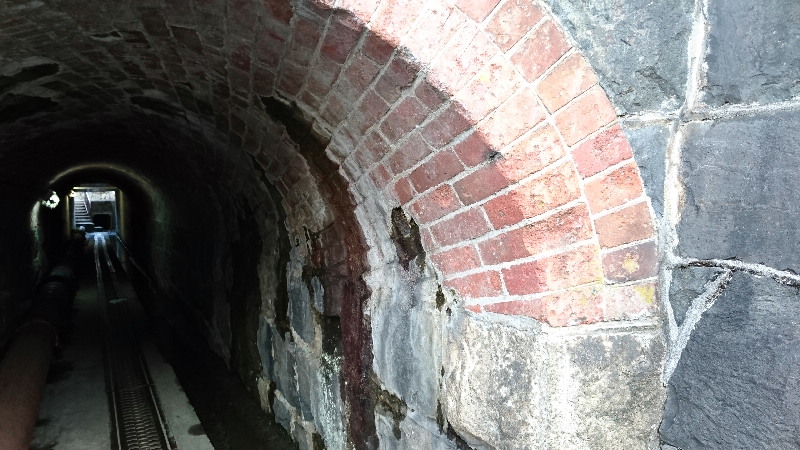 ![]() 天王山を目指す途中の東海道本線下で偶然みつけた 小さなねじりまんぽ” ねじりまんぽとは通称であり、正式には斜拱渠(しゃきょうきょ)・斜アーチと呼ばれている。通常、拱渠等のアーチ部に煉瓦やコンクリートブロックを用いるときは、まっすぐに積むのが普通であるが、鉄道線路とその下の道路や川が斜めに交差する場合などに、アーチ部を斜めにねじって積まれることがあった。 |