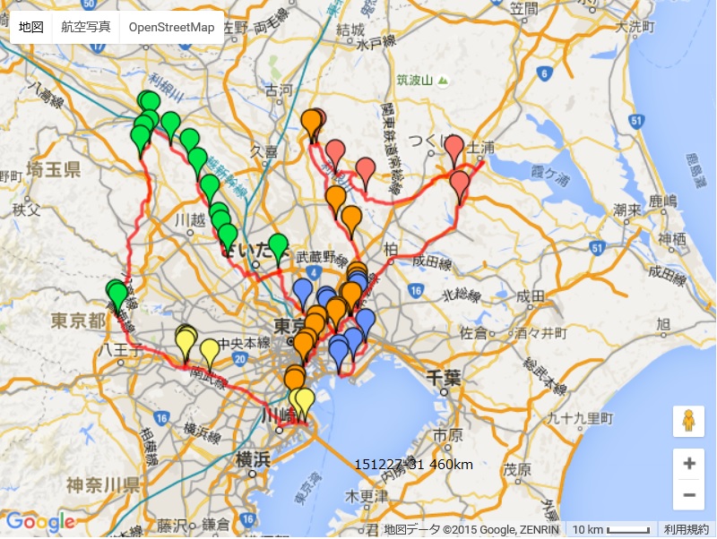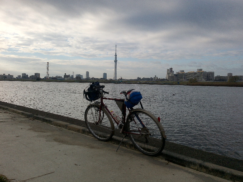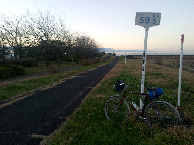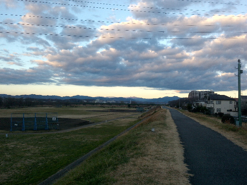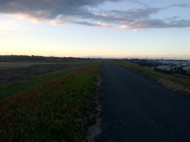 浦和あたりで日暮れになり、これ以上街灯がなく様子が分からない河川敷を走るのは無理と判断。健康ランド武蔵野へエスケープ。