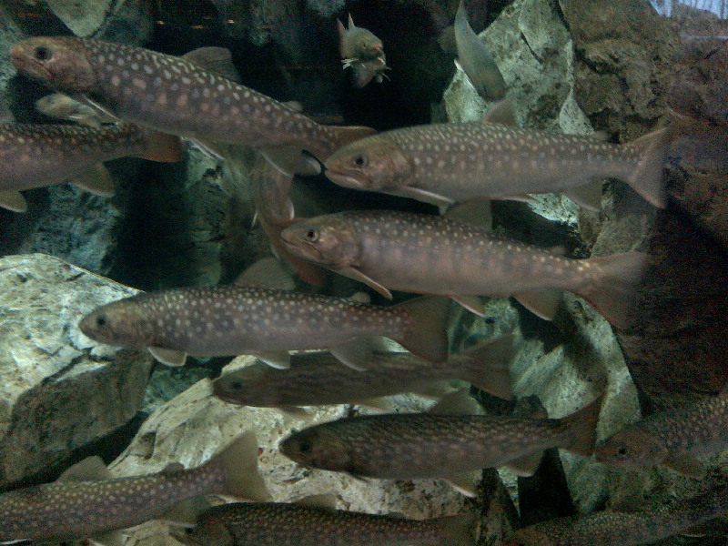 尺イワナに食入って見入る幼児。
