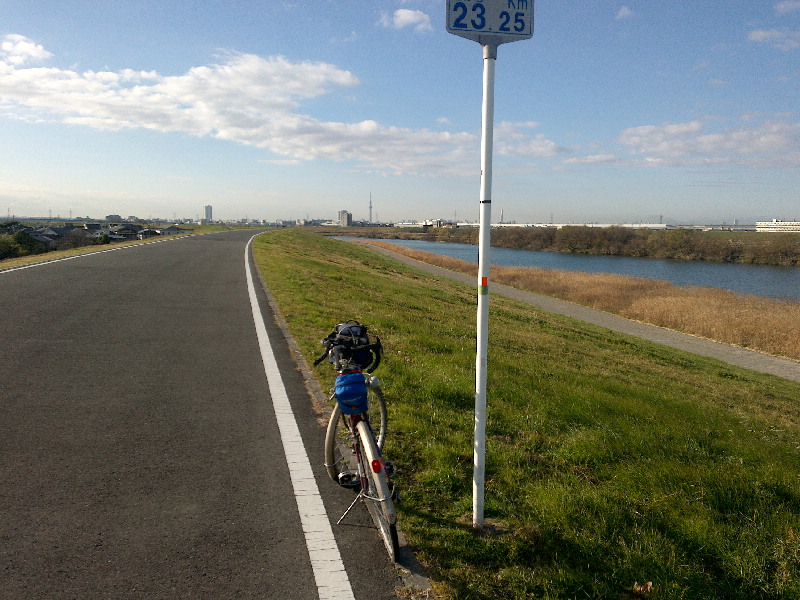 荒川CR 途中で畑の中を走行したり、一般道に出たり、なんかよくわからないうちに自転車専用道に出たり。