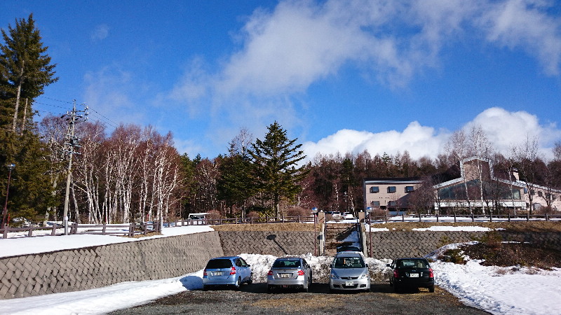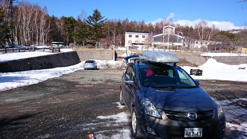 あずまや高原ホテルの手前の登山者用無料駐車場に停めます。