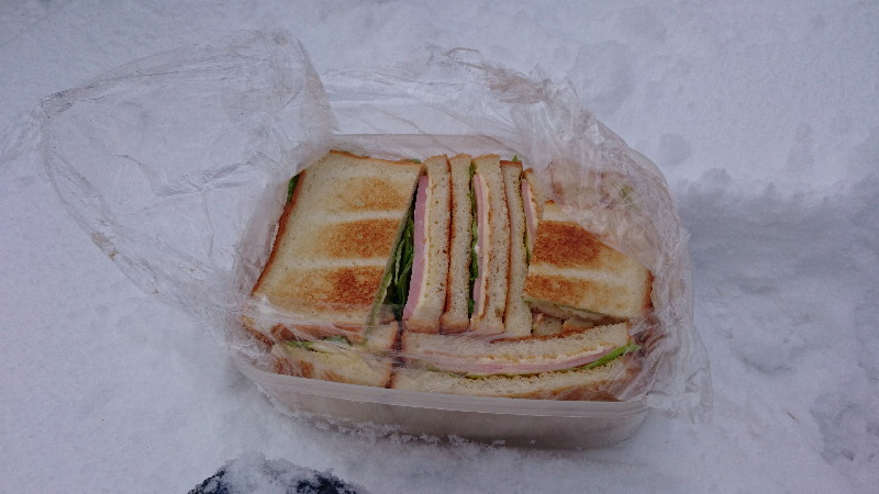 前日作ったサンドイッチを食べ。