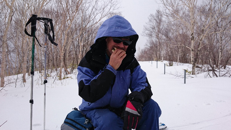 前日の雨、少ない雪量などコンディション悪い中でそれなりに滑降しました。
