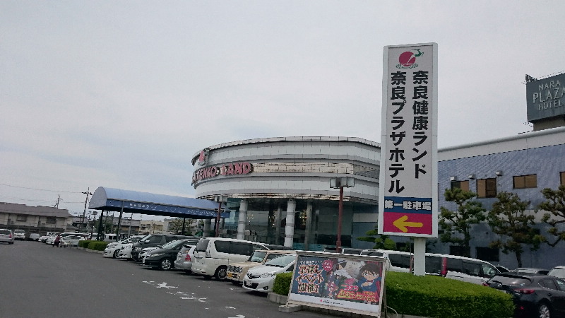 初日午後からの雨を避けるために奈良健康ランドで早々のお泊りに