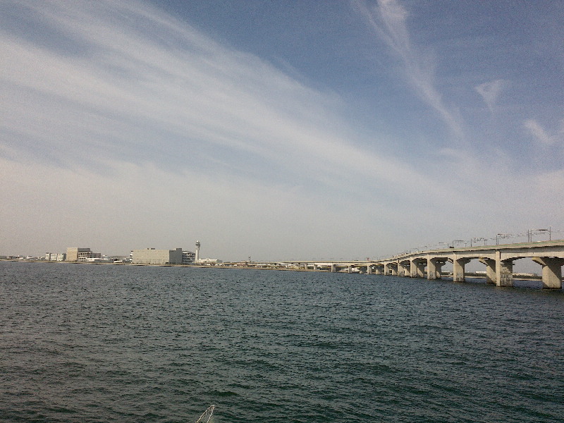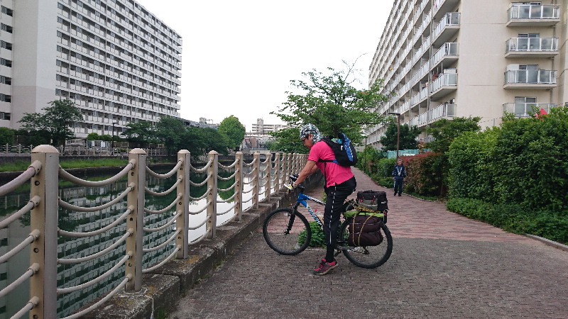 梅田川上の複雑な交差、自転車では通るルートが限られ、湾沿いの道だけ通過可能な模様。