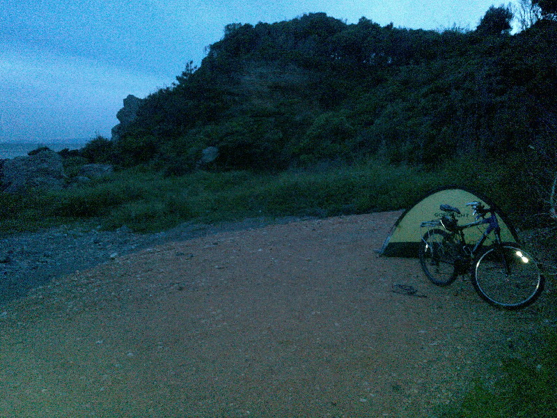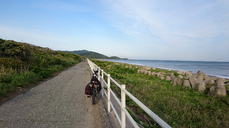 太平洋自転車道を行く。途中の海岸で幕営とする。