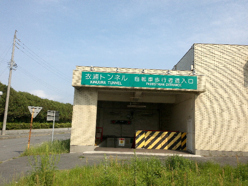 衣浦トンネル自転車歩道 半田側に向かって斜面を下ると階段 昇ると地上に。