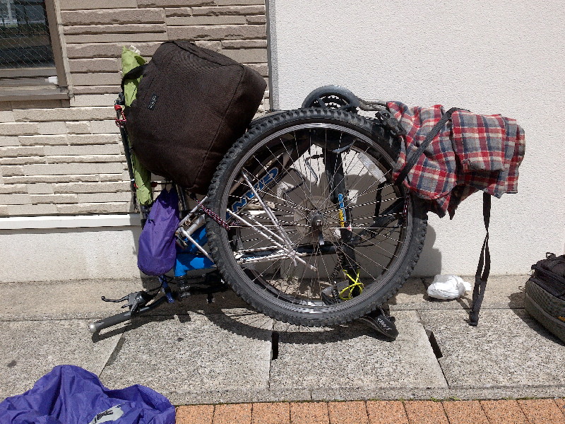 さて、今回の自転車行の装備はテント泊想定のMTBです。