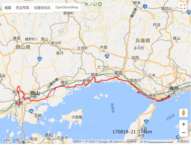 鬼ノ城を降りて倉敷のスーパ銭湯で汚れ落としと着替えをすませ。