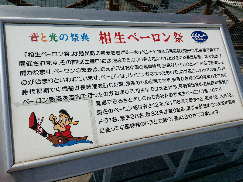 看板には相生にペーロン船が来た由来などが書いてあります。