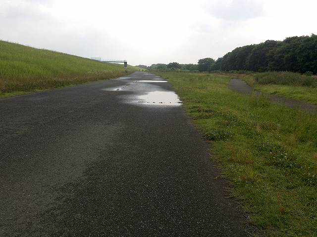 昨日の大雨後で水たまりが多数、バシャバシャと駆け抜ける。