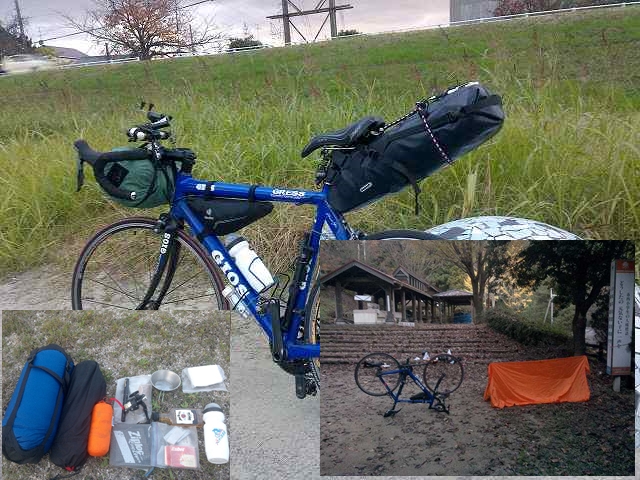 ロードレーサーで幕営道具を積むバイクパッキングを行います。