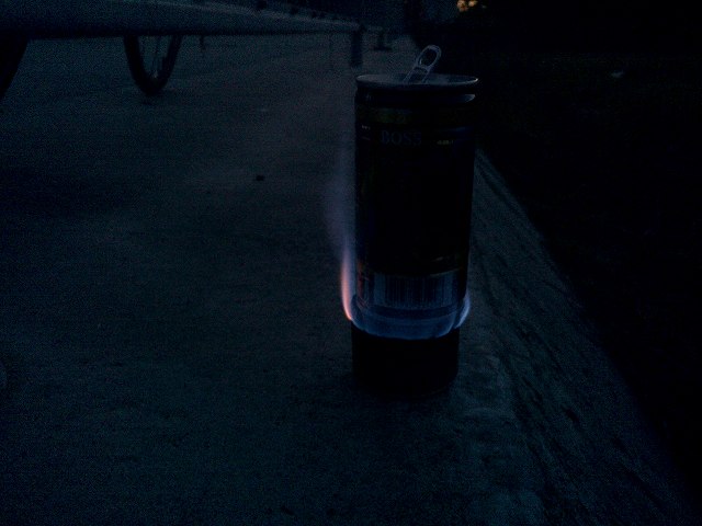アルコールストーブで缶コーヒーを温めて一服。