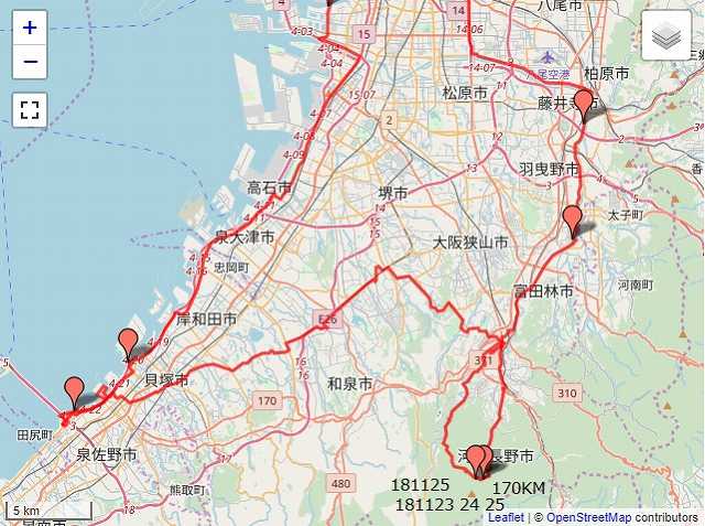 ここから河内長野に戻り、りんくうタウンに移動、りんくうの湯休憩&二色の浜公園で野宿