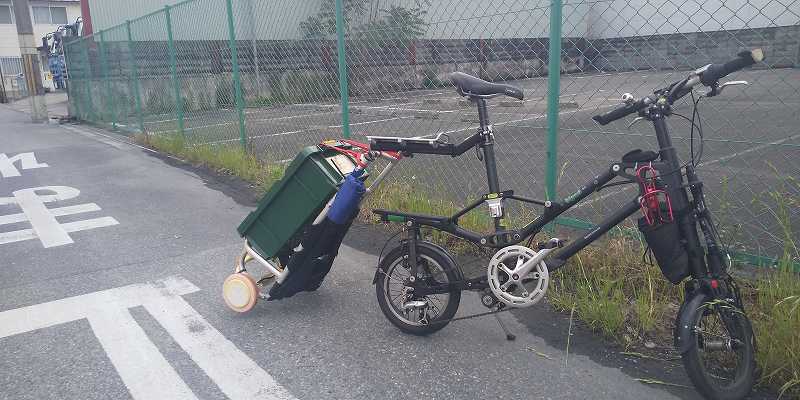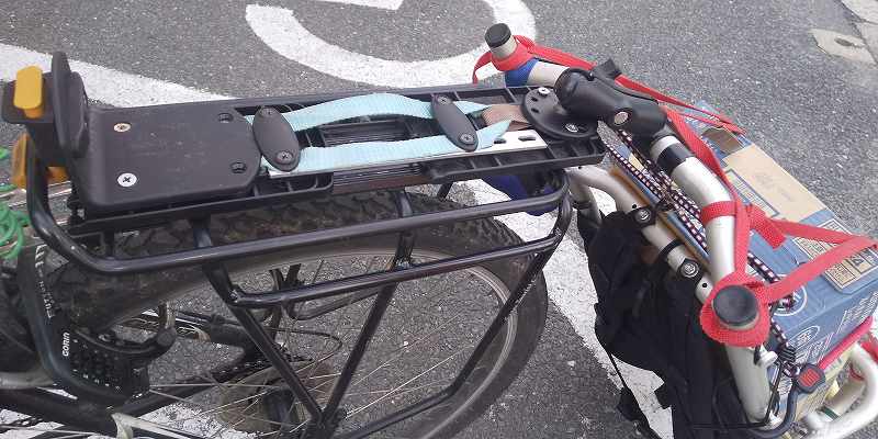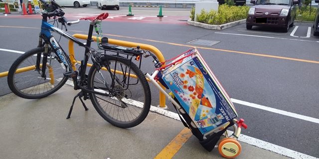 実用ではリサイクル小型家電を積載し電気屋に行き、駐輪場でワンタッチで取り外して荷物をそのままカート利用で店内持ち込み。