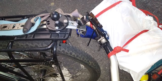 より汎用性を増すため、改造 MTX金具とRAMマウントを組み合わせ、どの自転車にも取り付け取り外し可能な様にした。