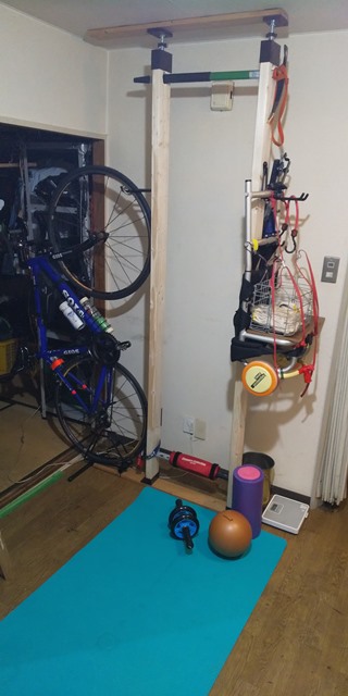 家内ジムの中心はエアロビクスですが、飽きたら懸垂、腹筋など負荷に耐えられる様な作りにした。